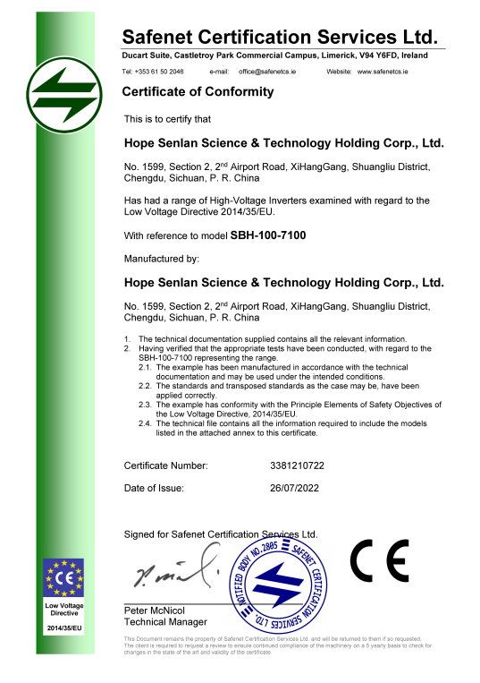SBH系列高压变频器CE认证-1