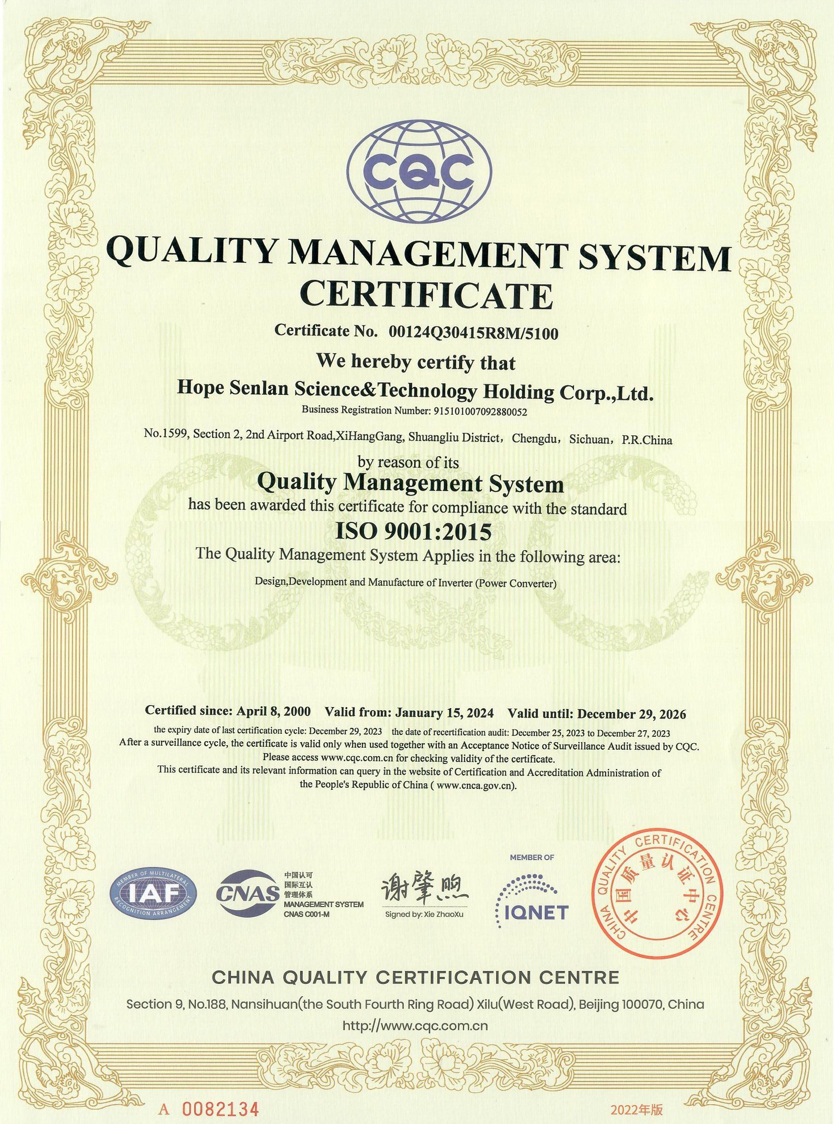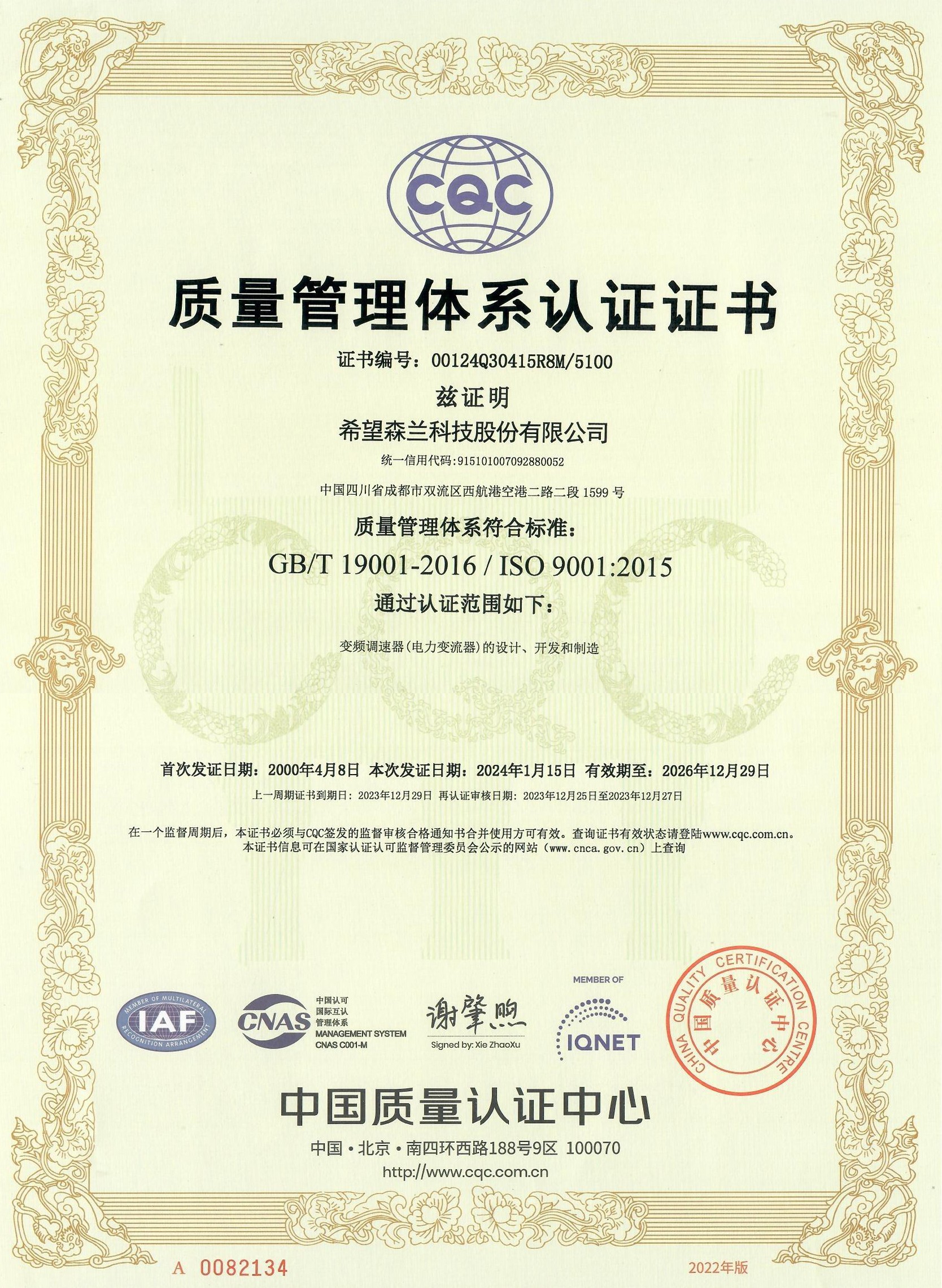 ISO 9001:2015质量管理体系认证(中文)