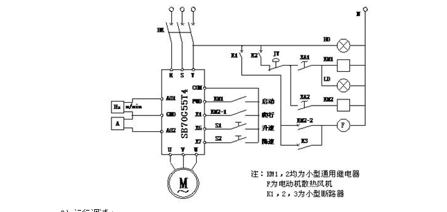 本方案选用的SB70G系列矢量控制变频器,系国产主要品牌,高、中、低应用档次系列齐全,对主要国际著名品牌机的兼容性较为全面。用该品牌SB70G系列对西门子MM440系列变频器进行直接代换及通讯兼容,以期进一步降低企业应用成本。