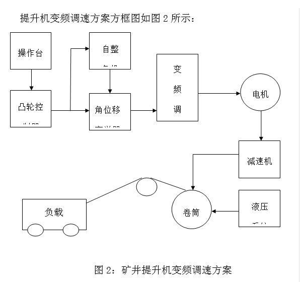 通过调研与论证,结合本公司矿井提升的现场实际情况,最终我公司技术中心做出决定,对提升机实施变频调速改造,利用在机械行业中广泛使用的自整角机来作为控制变频器的速度给定。自整角机是通过角位移变送器输出模拟量信号,操作工人搬动提升机操纵杆的角度,角位移变送器输出相应大小的模拟量信号,由此控制变频器运行频率,进而控制提升的运行速度。这种操作方式还可用变频器多段速控制,提升机只能在这几种速度下运行。而角位移变送器输出的是连续的角位移变送器输出模拟量信号,理论上提升机可在任意速度下运行,操作起来会方便一些,且与原操作习惯相似,操作工人容易掌握。