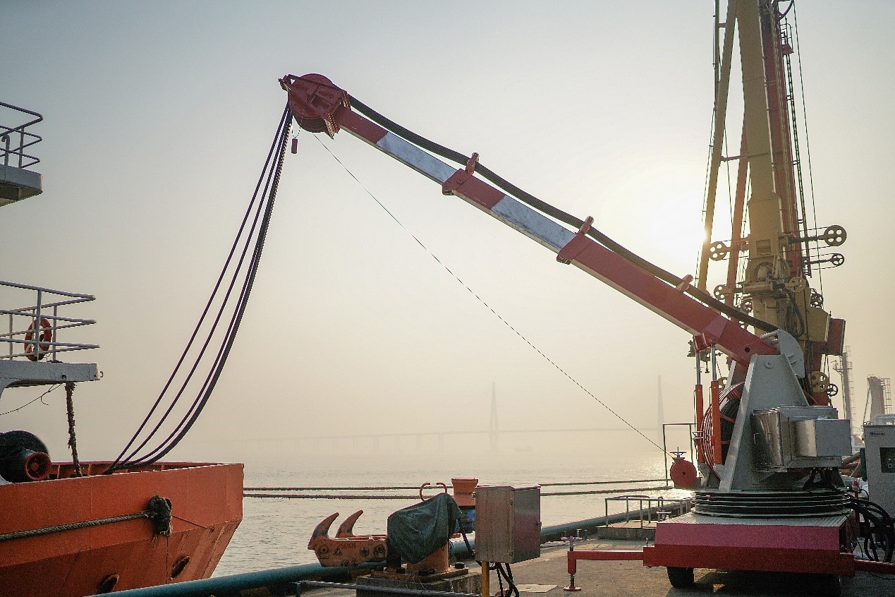 “呜——!”,一声悠长的汽笛声打破了嘉港石化码头的宁静,一艘装满油品的货轮缓缓驶入泊位。一名码头工作人员熟练得操作电缆卷盘车,将三根电缆轻松举升至货轮左舷,接到船用接电箱上,合上开关。随即,货轮上轰鸣的辅机停止了运行,岸电为靠岸船舶的后续作业提供了绿色能源。