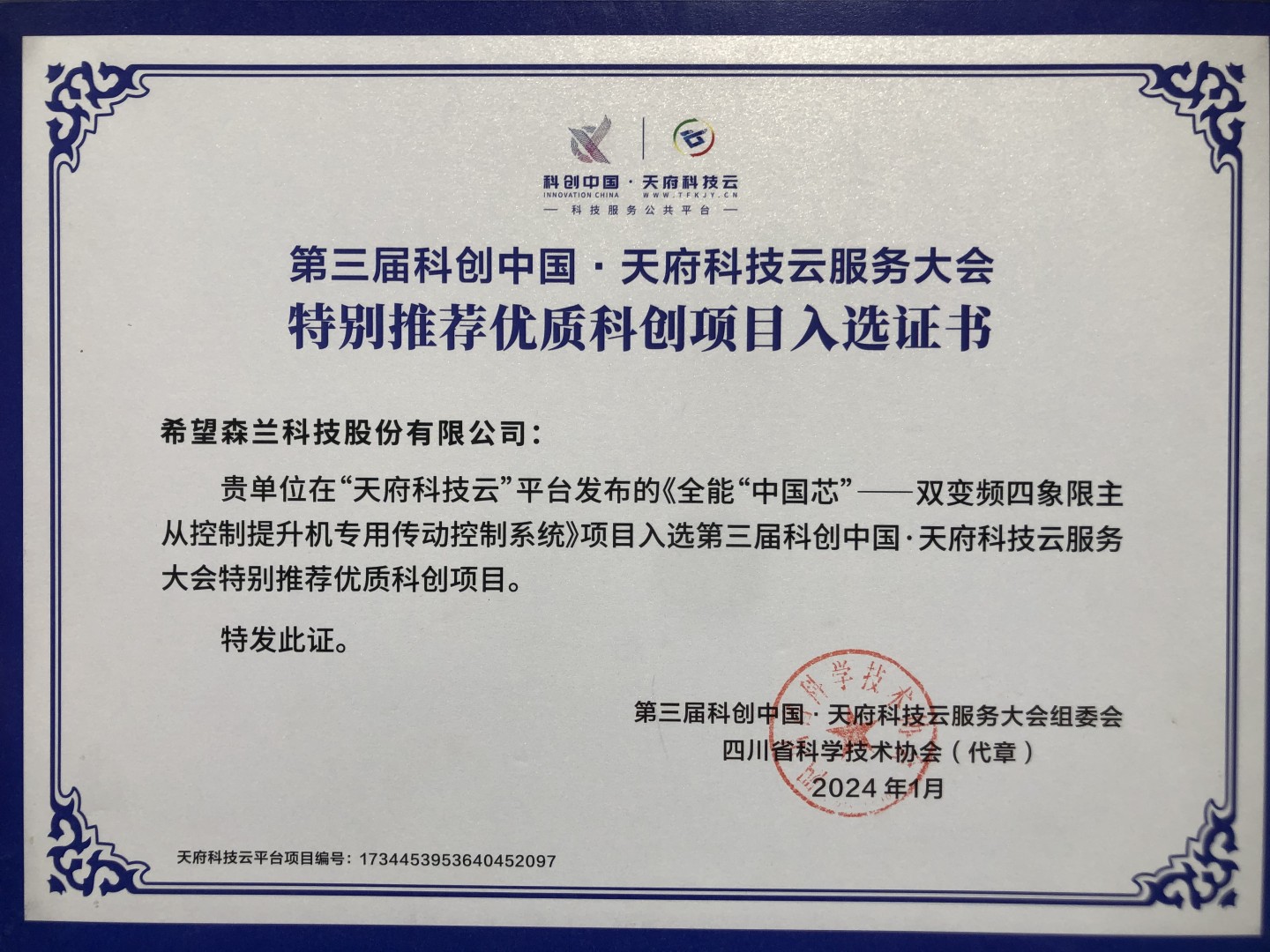 本届大会面向大院大所大企业等征集到科创项目8700个,威廉希尔500欧洲指数作为国内专业从事传动控制技术研究的领军企业,凭借硬核解决方案成功吸引了大会的关注。不仅被选为本届重大高新技术待推广项目,还荣获了“特别推荐优质科创项目”奖项。
